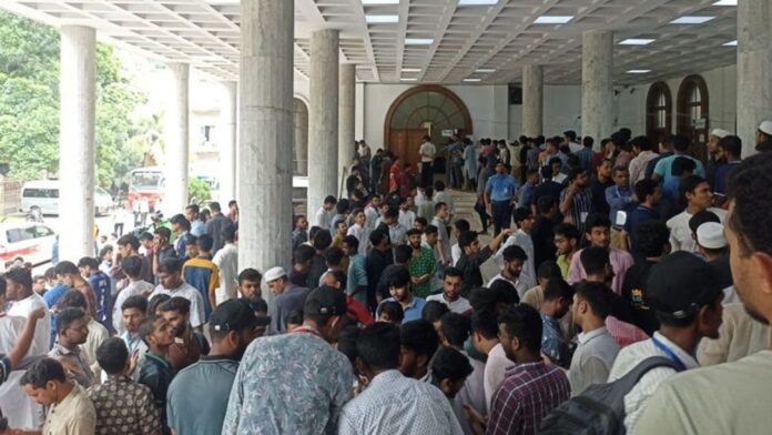 এদিন সকাল ৮টা থেকে শিক্ষার্থীরা উদ্দীপনা নিয়ে ডাকসু ও হল সংসদ নির্বাচনে ভোট দিতে লাইনবদ্ধ হয়েছেন। তবে উৎসবমুখর পরিবেশ দ্রুতই অশান্তিতে পরিণত হয়। প্রার্থীরা কেন্দ্রের প্রবেশপথে সরাসরি ভোট চাওয়ার পাশাপাশি লিফলেট ও প্রচার সামগ্রী বিতরণ করেছেন, যা নির্বাচন কমিশনের নিয়ম লঙ্ঘন করে।