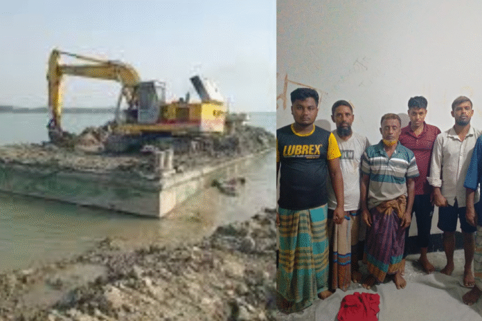 ১০/৯/২০২৫ ইং বুধবার রাত ২.১৫ মিনিটের সময় বাকেরগঞ্জ উপজেলা সহকারী কমিশনার (ভূমি) তন্ময় হালদারের নেতৃত্বে এবং থানা পুলিশের সহায়তায় গোপন তথ্যের ভিত্তিতে উপজেলার নলুয়া ইউনিয়নের মাছুয়াখালী গ্রামের পান্ডব নদীর তীরে অবৈধ ভাবে কৃষি জমির মাটি কেটে ইট ভাটায় নেওয়ার সময় ৬ ( ছয়) জনকে আটক করে।