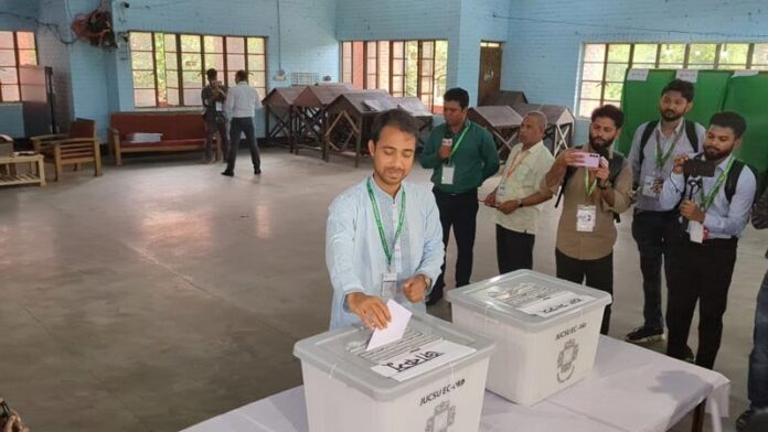 জাহাঙ্গীরনগর বিশ্ববিদ্যালয় কেন্দ্রীয় ছাত্র সংসদ (জাকসু) নির্বাচনে ভোট দিয়েছেন ছাত্রদল প্যানেলের সহ-সভাপতি (ভিপি) প্রার্থী মো. শেখ সাদী হাসান। আজ বৃহস্পতিবার সকাল ৯টা ৫০ মিনিটে বিশ্ববিদ্যালয়ের মীর মশাররফ হোসেন হলে লাইনে দাঁড়িয়ে ভোট দেন তিনি। এসময় শেখ সাদী হাসান বলেন, ‘প্রশাসন ছাত্রশিবিরের প্রার্থীদের সুবিধা দেওয়ার চেষ্টা করছে। ভোট গণনার যে মেশিন আনা হয়েছে, তা একটি নির্দিষ্ট ছাত্র সংগঠনের মদদপুষ্ট একটা কোম্পানি থেকে আনা হয়েছে। আমরা এ বিষয়ে লিখিত অভিযোগ দিয়েছি। আমরা চাই, ভোট ম্যানুয়ালি গণনা করা হোক।’