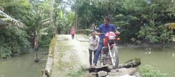 কয়েক বছর আগে ব্রিজটির মধ্যবর্তী দুটি অংশ ভেঙে বড় গর্তে পরিণত হয়। পরে স্থানীয়রা কাট দিয়ে গর্ত আটকে দেয়। ব্রিজের রেলিং ভেঙে গেছে। প্রায় দেড় বছর আগে ব্রিজটির সামনের অংশ ভেঙে গেছে। এখন ব্রিজ দিয়ে সব ধরনের যানবাহন চলাচল বন্ধ হয়ে গেছে। তারা আরও জানান, ব্রিজটি ভেঙে যাওয়ার এখন মানুষ পায়ে হেঁটে পারাপারও ঝুঁকি হয়ে পরেছেন।