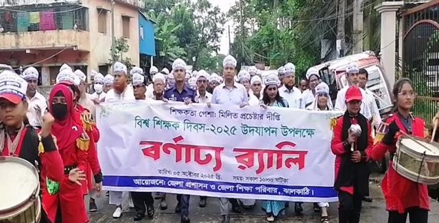 ‘শিক্ষাকতা পেশা মিলিত প্রচেষ্টার দীপ্তি’—এই প্রতিপাদ্যকে সামনে রেখে ঝালকাঠিতে উৎসবমুখর পরিবেশে পালিত হয়েছে বিশ্ব শিক্ষক দিবস। রোববার (৫ অক্টোবর) সকালে জেলা প্রশাসন ও জেলা শিক্ষা পরিবারের আয়োজনে জেলা প্রশাসকের কার্যালয়ের সামনে থেকে এক বর্ণাঢ্য র্যালি বের হয়। র্যালিটি শহরের প্রধান প্রধান সড়ক প্রদক্ষিণ শেষে জেলা প্রশাসক কার্যালয় প্রাঙ্গণে এসে শেষ হয়।