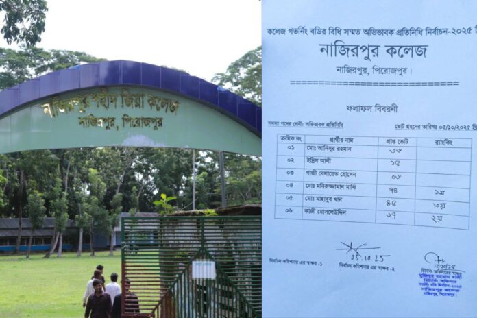 প্রান্ত মিস্তী, নাজিরপুর প্রতিনিধি: পিরোজপুরের নাজিরপুরে শহীদ জিয়া কলেজে আনন্দঘন ও উৎসবমুখর পরিবেশে অভিভাবক প্রতিনিধি নির্বাচন সম্পন্ন হয়েছে।