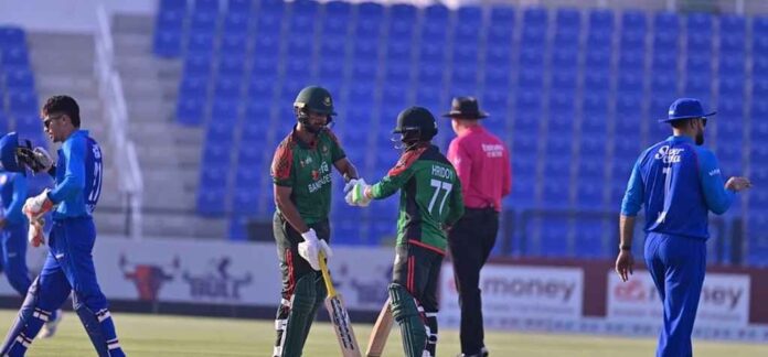 আবুধাবিতে টস জিতে ব্যাট করতে নেমে ব্যাটিং বিপর্যয়ের পরও মেহেদি হাসান মিরাজ ও তাওহিদ হৃদয়ের দারুণ জুটিতে ভর করে ২২১ রানে অলআউট হয়েছে বাংলাদেশ দল। ফলে আফগানিস্তানের সামনে জয়ের লক্ষ্য দাঁড়িয়েছে ২২২ রান।