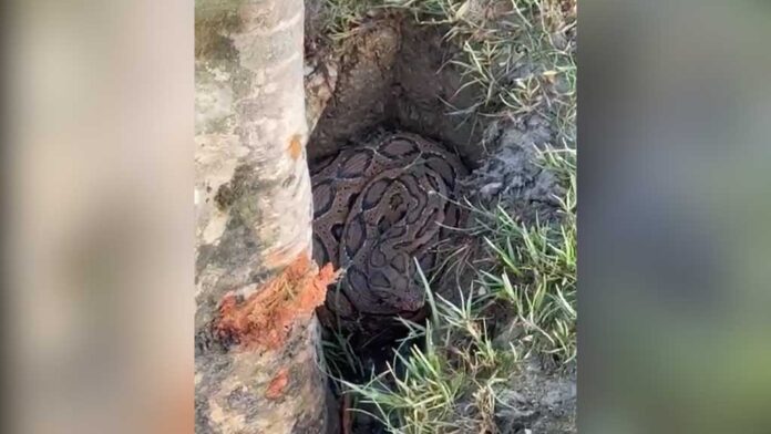 প্রত্যক্ষদর্শী তালহা সিফাত বলেন, “আমরা ঘুরতে গিয়ে, একটি বড় সাপ দেখি। পরে সাপটি একটি গাছের গুড়ির পাশে আশ্রয় নেয়। তখন উদ্ধারের জন্য অনেক জায়গায় ফোন দিয়েছি। কিন্তু কেউ সাড়া দেয়নি।