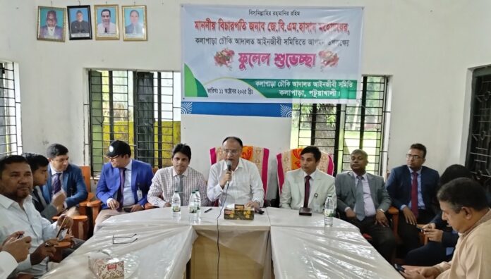বিচারপতি জেবিএম হাসান বলেন, আইনজীবী ও বিচারক একই পাখির দু্#৩৯;টি ডানা। বিচার প্রার্থী মানুষ ন্যায় বিচার পাবে এদের সমন্বয়ে।্এর আগে বিচারপতি জেবিএম হাসান শনিবার সকালে পটুয়াখালীর কলাপাড়া চৌকি আদালত পরিদর্শন শেষে কলাপাড়া বার ভবনে এলে জ্যেষ্ঠ আইনজীবী নেতৃবৃন্দ তাকে ফুলেল শুভেচ্ছায় সিক্ত করেন। পরে তিনি বার ভবনে আইনজীবীদের সাথে শুভেচ্ছা বিনিময় করেন।