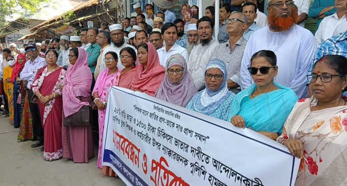 মানববন্ধনে হাজারো শিক্ষকদের উপস্থিতিতে ঘন্টাব্যাপী বন্ধ থাকে ওই সড়কের যান চলাচল। এতে