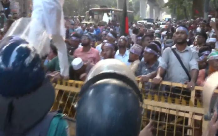 এই শিক্ষকনেতার ঘোষণার পরপরই অবস্থানরত শিক্ষক–কর্মচারীরা শহীদ মিনার থেকে দোয়েল চত্বর হয়ে সচিবালয় অভিমুখে যাত্রা করেন। তবে মিছিলটি হাইকোর্ট মোড়ে এলে পুলিশ তাঁদের বাধা দেয়। হাইকোর্ট মোড়ে পুলিশের ব্যাপক উপস্থিতি দেখা গেছে।