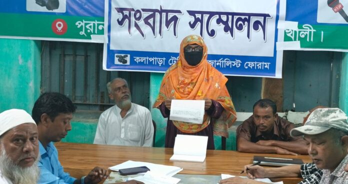 মঙ্গলবার বেলা এগারোটায় কলাপাড়া টেলিভিশন জার্নালিস্ট ফোরামে এ সংবাদ সম্মেলন অনুষ্ঠিত হয়। এসময় উপস্থিত ছিলেন ওই নারীর পিতা মো. মোসলেম দফাদার, ভাই মো. আব্দুর রহমান।