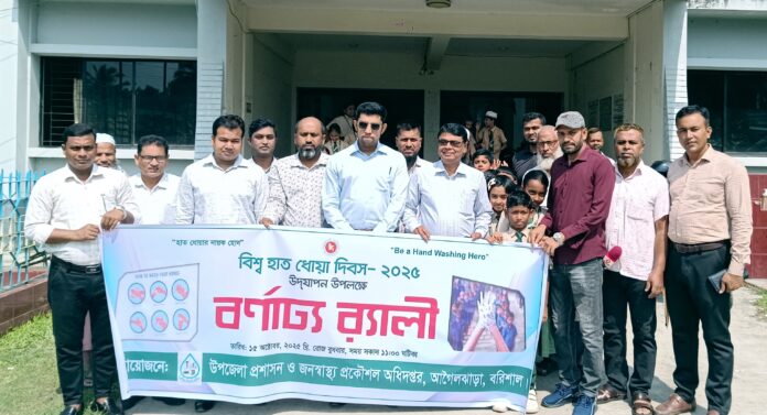 আগৈলঝাড়া (বরিশাল) প্রতিনিধিঃ বরিশালের আগৈলঝাড়ায় বিশ্ব হাতধোয়া দিবস উপলক্ষ্যে র্যালী ও আলোচনা সভা অনুষ্ঠিত হয়েছে। উপজেলা জনস্বাস্থ্য প্রকৌশল অধিদপ্তরের উদ্যোগে গতকাল বুধবার সকালে উপজেলা পরিষদ চত্বর থেকে র্যালী বের হয়ে বিভিন্ন সড়ক প্রদক্ষিণ শেষে চত্বরে গিয়ে শেষ হয়।