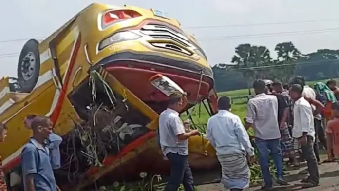 ফরিদপুর-বরিশাল মহাসড়কে যাত্রীবাহী শ্যামলী পরিবহন বাসের ধাক্কায় অপর একটি বাস নিয়ন্ত্রণ হারিয়ে উল্টে পানিভর্তি খাদে পড়ে দুই জন নিহত হয়েছেন। ঘটনাস্থলেই শামসুন্নাহার (৪০) নামে এক নারী নিহত হন। আহত হয়েছেন কমপক্ষে ১৫ জন।
