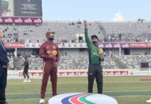 একাদশে একগাদা স্পিনার নিয়ে খেলতে নেমে শুরু থেকেই স্পিন আক্রমণ চালাচ্ছে ওয়েস্ট ইন্ডিজ। গত রাতে বাংলাদেশে এসে দুপুরেই ম্যাচের প্রথম ওভারে করেছেন আকিল হোসেন। পরের ওভারে আসেন অফ স্পিনার রস্টোন চেজ।