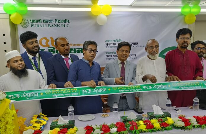 কলাপাড়া (পটুয়াখালী) প্রতিনিধি : পটুয়াখালীর কলাপাড়া উপজেলার আলীপুর মৎস্য বন্দরে পূবালী ব্যাংক পিএলসির ২৫৮তম উপশাখার শুভ উদ্বোধন করা হয়েছে। মঙ্গলবার বেলা ১১টার সময় এক অনুষ্ঠানের মাধ্যমে এ শাখার উদ্বোধন করা হয়। আলীপুর মৎস্য বন্দরের করিম মুসুল্লী টাওয়ারের দ্বিতীয় তলায় এ শাখাটি উদ্বোধন করা হয়েছে। এতে প্রধান অতিথি হিসেবে উপস্থিত থেকে এ শাখার আনুষ্ঠানিক উদ্বোধন করেন পূবালী ব্যাংক পিএলসির বরিশাল অঞ্চলের উপমহাব্যবস্থাপক ও অঞ্চল প্রধান মুহাম্মদ মোশাহিদুল্লাহ।