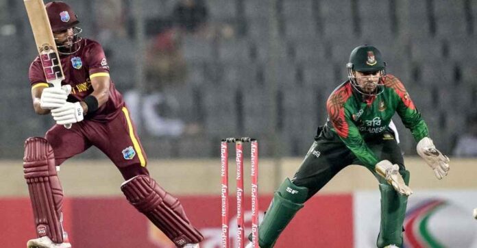 অ্যালিক অ্যাথানাজে ১৬ রানে এবং কার্টি ২০ রানে ব্যাট করছেন। চ্যালেঞ্জিং লক্ষ্য তাড়া করতে নেমে শুরুটা ভালো হয়নি সফরকারীদের। ইনিংসের তৃতীয় বলে ব্যান্ডন কিংকে লেগ বিফোরের ফাঁদে ফেলেন নাসুম আহমেদ।