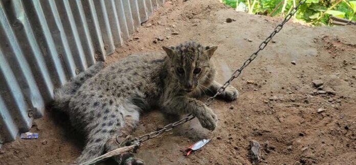 মুক্ত হওয়ার জন্য ছোটাছুটি করতে গিয়ে শিকল ও লাইলনের রশিতে প্রাণিটির পা কেটে গিয়েছে। খবর পেয়ে সেখান থেকে ওয়াইল্ড লাইফ এনিমেল রেসকিউ টিম মেছোবাঘটি উদ্ধার করেছে। পরে ভেটেনারী সার্জনের মাধ্যমে চিকিৎসা সেবা দিয়ে বন বিভাগে রাখা হয়েছে। সুস্থ হলে অবমুক্ত করা হবে।