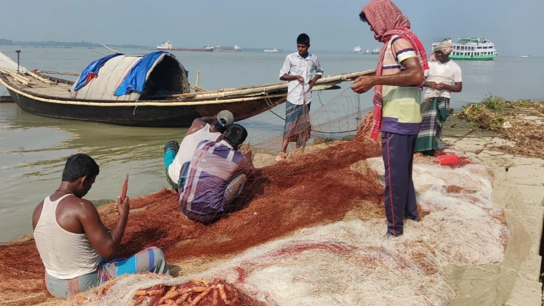মা ইলিশ রক্ষার জন্য আরোপিত ২২ দিনের নিষেধাজ্ঞা শনিবার (২৫ অক্টোবর) দিবাগত মধ্যরাত থেকে শেষ হচ্ছে, যার ফলে চাঁদপুরসহ উপকূলের হাজার হাজার জেলে ইলিশ শিকারে নামার জন্য সব প্রস্তুতি সম্পন্ন করেছেন। নিষেধাজ্ঞা শেষে পদ্মা ও মেঘনা নদীতে মাছ ধরার জন্য জেলেরা নৌকা, জাল মেরামত করে প্রস্তুত।