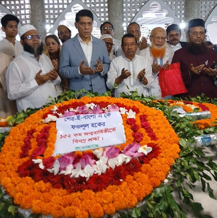 রাহাদ সুমন,বিশেষ প্রতিনিধি :বরিশালের বানারীপাড়া উপজেলার চাখার ও ঢাকায় বিস্তারিত কর্মসূচির মধ্য দিয়ে বাঙালী জাতীয়তাবাদের অবিসংবাদিত নেতা শের-ই-বাংলা একে ফজলুল হকের ১৫২ তম শুভ জন্মবার্ষিকী উদযাপন করা হয়েছে। জন্মদিন উপলক্ষে শের -ই- বাংলার ঢাকায় মাযার (সমাধী) প্রাঙ্গণে তার জীবন ও কর্মের ওপর এক প্রানবন্ত আলোচনা সভা অনুষ্ঠিত হয়।