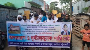 এসময় বক্তারা অধ্যক্ষ আলীম উজজামানের অপসারণ এবং কলেজের প্রতিষ্ঠাতা ও বর্তমান এডহক কমিটির সভাপতি মো. গোলাম মোস্তফার বিরুদ্ধে হাইকোর্টে দায়েরকৃত মামলা প্রত্যাহারের দাবি জানান।