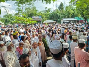 এ সময় উপস্থিত ছিলেন বিএনপির কেন্দ্রীয় নির্বাহী কমিটির সহ-সাংগঠনিক সম্পাদক খোন্দকার মাশুকুর রহমান মাশুক, জেলা ও উপজেলা কমান্ডারসহ স্থানীয় মুক্তিযোদ্ধা, জনপ্রতিনিধি এবং এলাকার গণ্যমান্য ব্যক্তিবর্গ। পরে রাষ্ট্রীয় মর্যাদায় মরদেহ দাফন সম্পন্ন হয়।