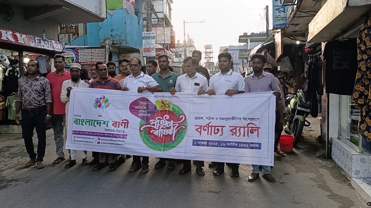 বরিশাল সংবাদ দাতা : বরিশালের জনপ্রিয় আঞ্চলিক দৈনিক বাংলাদেশ বানী পত্রিকার প্রতিষ্ঠা বার্ষিকী উপলক্ষে বাকেরগঞ্জে এক বর্নাঢ্য র্যালী ও আলোচনা সভা অনুষ্ঠিত হয়েছে ১ নভেম্বর শনিবার বিকেল পাঁচ টায় বাকেরগঞ্জ প্রেসক্লাবের আয়োজনে উপজেলার সাংবাদিকদের উপস্থিতিতে পৌরসভার সদর রোডে এক র্যালী অনুষ্ঠিত হয়। র্যালী শেষে বাকেরগঞ্জ প্রেসক্লাব সভাকক্ষে আলোচনা সভার আয়োজন করা হয়।