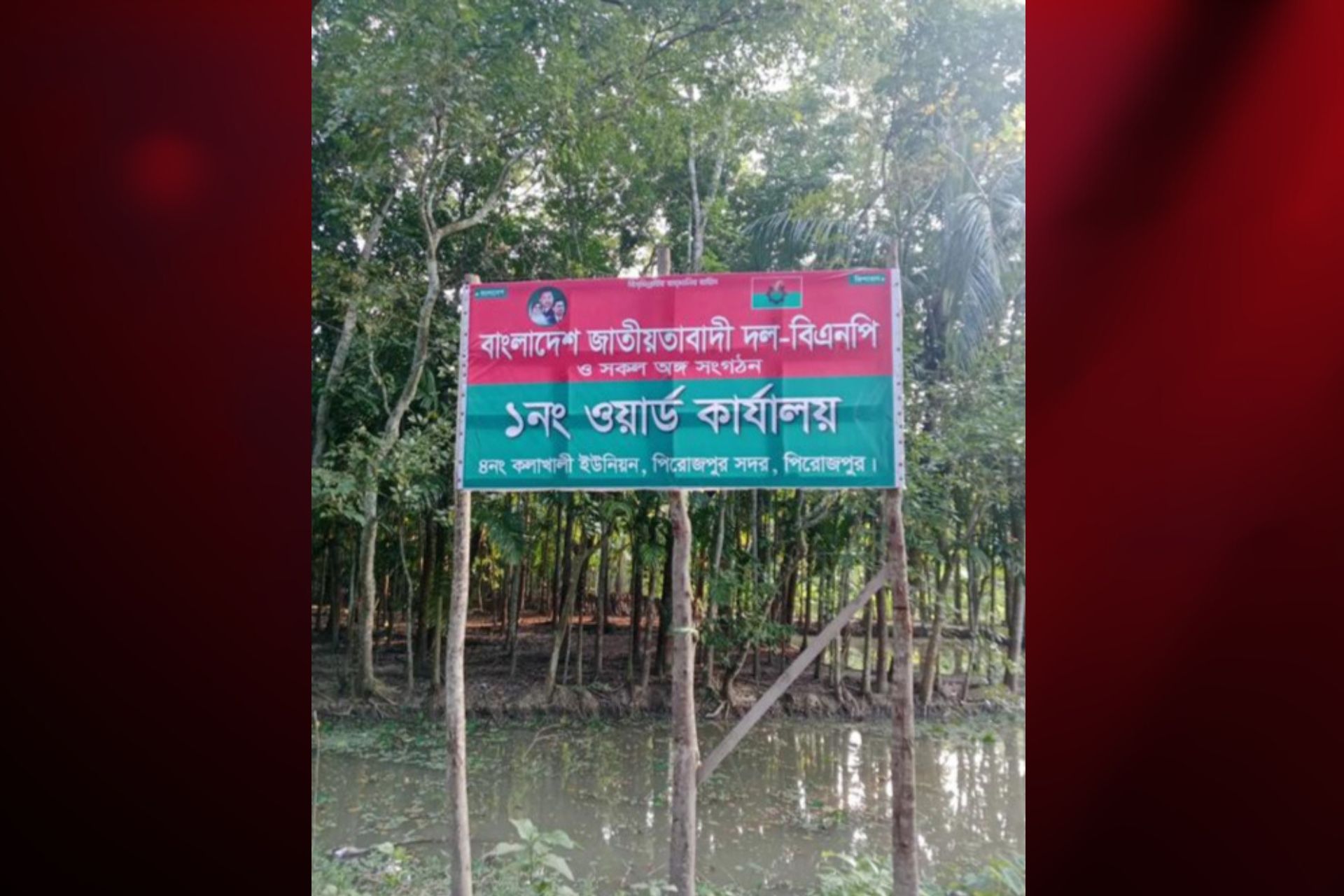 যার দলিল (নং ২৪৭৬/২৫)। কাজী বাহাদুর বলেন, আমার ছুটি শেষে আবার প্রবাসে চলে আসি। আমি প্রবাসে থাকায় সুযোগ নিয়ে সিদ্দিক হাওলাদার আমার ক্রয়কৃত জমিতে জোর করে বিএনপির সাইনবোর্ড টানিয়েছে। সে একজন ভুমিদস্যু। আমি বিভিন্ন জায়গায় এ বিষয়ে অভিযোগ করেছি।” এ বিষয়ে জানতে চাইলে কলাখালী ইউনিয়ন বিএনপির সভাপতি চান সরদার বলেন, “কাজী বাহাদুর বিষয়টি আমাকে জানিয়েছেন।