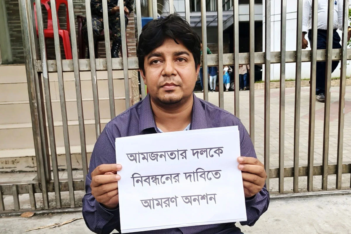 নতুন রাজনৈতিক দল হিসেবে আমজনতা দল নির্বাচন কমিশনের (ইসি) নিবন্ধন না পাওয়ায় দলটির সদস্য সচিব তারেক রহমান কমিশনের সামনে আমরণ অনশনের ডাক দিয়েছেন।