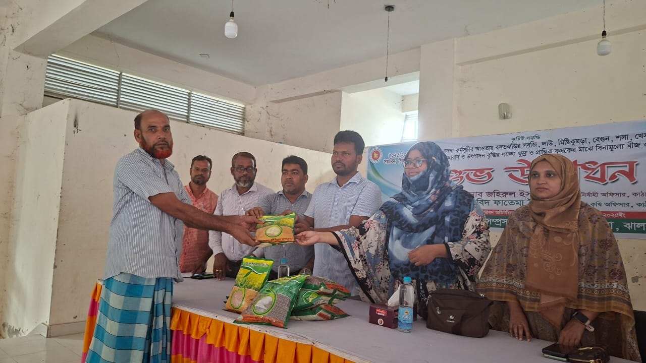 সাকিবুজ্জামান সবুর, স্টাফ রিপোর্টার: ঝালকাঠির কাঠালিয়ায় রবি মৌসুমে কৃষি প্রণোদনার আওতায় ক্ষুদ্র ও প্রান্তিক কৃষকদের মাঝে বিনামূল্যে বীজ ও সার বিতরণ করা হয়েছে। বসতবাড়িতে সবজি ও বিভিন্ন রবি ফসলের উৎপাদন বৃদ্ধি করতেই সরকারের এ উদ্যোগ নেওয়া হয়েছে।