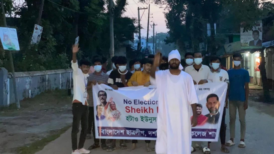 এসময় দশমিনা উপজেলা ছাত্রলীগের ব্যানারে হটাও ইউনুস বাঁচাও দেশ- লেখা ছিল। মিছিলে ৩৫-৪০জন নেতাকর্মীকে দেখা গেছে। তাদের ‘মুজিব তোমার স্মরণে, ভয় করি না মরনে, শেখ হাসিনা আসবে, বাংলাদেশ হাসবে’ এমন স্লোগান দিতে শোনা যায়।