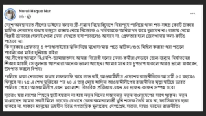 সোমবার নিজের ফেসবুক আইডিতে এক পোস্টে তিনি এসব কথা বলেন।