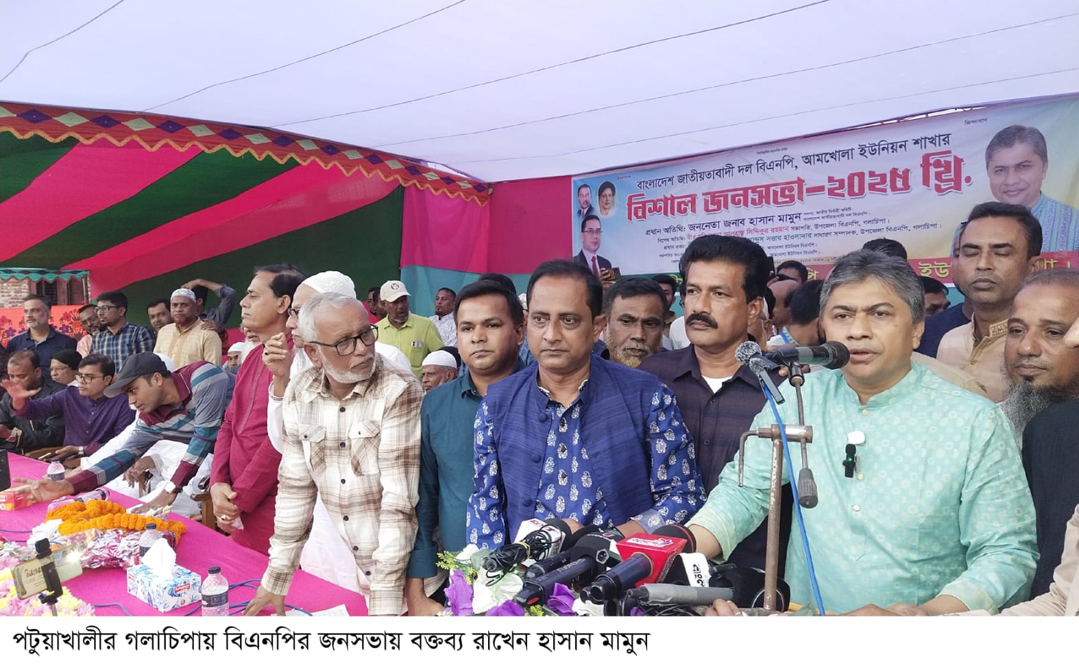 গণ অধিকারের নামে বিএনপির প্রতিটি ইউনিয়নে কর্মীদের উপর হামলা, মারামারি, জখম, পাল্টা জখম শুরু হয়েছে।’ পটুয়াখালীর গলাচিপা উপজেলার আমখোলা কলেজ মাঠে বুধবার (১২ নভেম্বর) বিকাল ৫টায় অনুষ্ঠিত বিএনপি’র এক বিশাল জনসভায় প্রধান অতিথির বক্তব্যে এসব কথা বলেন হাসান মামুন।