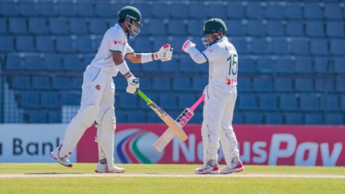 সিলেট টেস্টের তৃতীয় দিনেই জয়ের সুবাস পাচ্ছে বাংলাদেশ ক্রিকেট দল। প্রথম ইনিংসে আয়ারল্যান্ডের করা ২৮৬ রানের জবাবে মাহমুদুল হাসান জয় (১৭১) ও নাজমুল হোসেন শান্তর (১০০) জোড়া সেঞ্চুরিতে ভর করে ৮ উইকেটে ৫৮৭ রান নিয়ে ইনিংস ঘোষণা করে বাংলাদেশ।