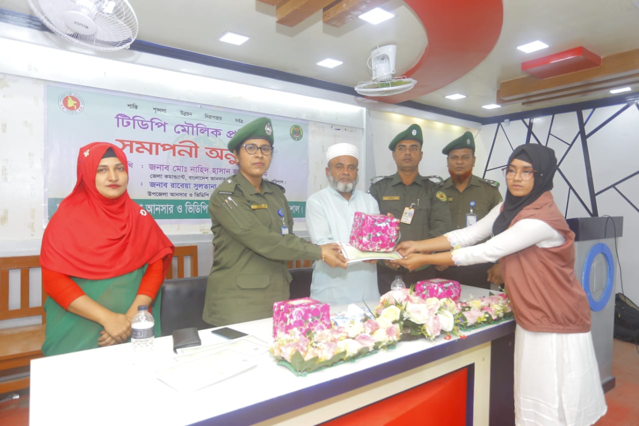 বরিশাল সদর উপজেলায় আনসার ও গ্রাম প্রতিরক্ষা বাহিনীর আয়োজনে টিডিভি (গ্রাম প্রতিরক্ষা দল) মৌলিক প্রশিক্ষণের সমাপনী অনুষ্ঠান অনুষ্ঠিত হয়েছে। অনুষ্ঠানে প্রধান অতিথি হিসেবে উপস্থিত ছিলেন বাংলাদেশ আনসার ও গ্রাম প্রতিরক্ষা বাহিনীর বরিশাল জেলা কমান্ড্যান্ট মোঃ নাহিদ হাসান জিনি, বিএসএম। বিশেষ অতিথি হিসেবে উপস্থিত ছিলেন শিক্ষাবিদ মোঃ জসিম উদ্দিন, প্রধান শিক্ষক।