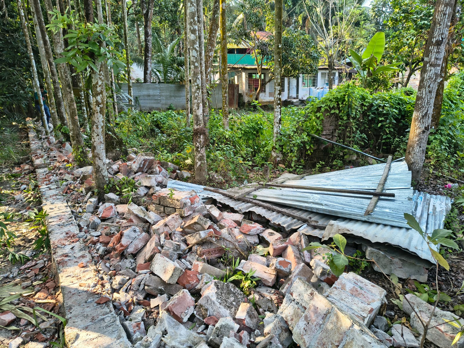 পূর্ব শত্রুতার জেরে একই এলাকার জয়দেব সাহার পুত্র সুশান্ত সাহা, টিপু সাহা, শুভ সাহা এবং তাদের মা গীতা রানী ও মিলন সাহা, মিঠুন সাহা, নয়ন দাসসহ ১০/১২জন বহিরাগত ভাড়াটে সন্ত্রাসী মিলে আইনজীবী লুৎফর রহমানের বাড়ির সীমানার নিরাপত্তা প্রাচীরের দেয়াল গুড়িয়ে দেয়া হয়। নিরাপত্তা প্রাচীর ভেঙে বাড়ি দখলের চেষ্টা করা হয়েছে বলে ভুক্তভোগী পরিবার থেকে অভিযোগ করা হয়েছে।