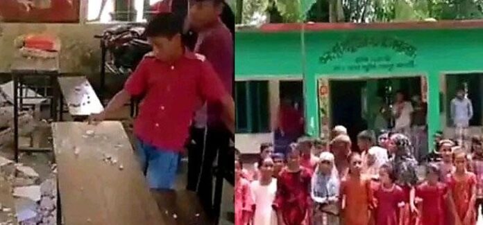 জায়গা না থাকায় অনেক শিক্ষার্থীকে বাইরে অপেক্ষা করতে হয়। বিদ্যালয়ে নেই গাইড ওয়াল, নেই খেলার মাঠ—সব মিলিয়ে সম্পূর্ণ অনুপযোগী একটি শিক্ষাপ্রতিষ্ঠান। চতুর্থ শ্রেণির ছাত্রী নাফিসা জানায়, তারা ভয়ে ভয়ে ক্লাস করে; কখন কী ঘটে যায় সেই আতঙ্ক সবসময়ই কাজ করে। সায়েম জমাদ্দার বলছে, বৃষ্টি হলেই ছাদ থেকে পানি পড়ে এবং দেয়ালের পলেস্তারা ঝরে পড়ে।