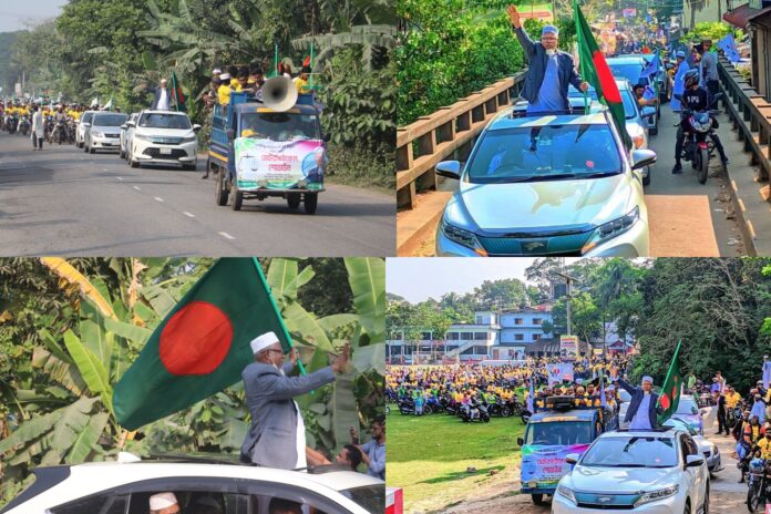 অনুষ্ঠানে আরও উপস্থিত ছিলেন উপজেলা জামায়াতে ইসলামের সাবেক আমীর হাফেজ কাওসার হোসাইন, পৌর জামায়াতের আমীর আল-আমীন সর্দারসহ উপজেলা, ইউনিয়ন ও ওয়ার্ড পর্যায়ের নেতাকর্মীরা। আয়োজকদের দাবি, শোভাযাত্রায় প্রায় এক হাজার মোটরসাইকেল অংশ নেয়, যা বিভিন্ন স্টেশনে বিপুল উৎসাহ ও জনসমাগম তৈরি করে।