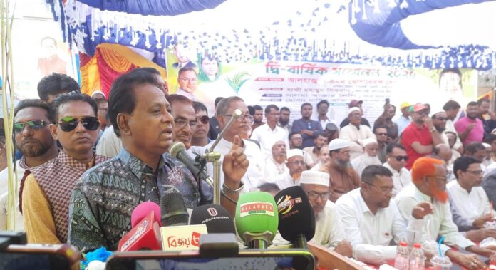 মানুষকে গুম খুন করে সন্ত্রাসের রাজত্ব কায়েম করেছিল। এই অন্যায়ের বিরুদ্ধে ছাত্রজনতা রাস্তায় নেমে আন্দোলনের মুখে দলীয় নেতাকর্মীদের বিপদে ফেলে দেশ থেকে পালিয়ে যায় শেখ হাসিনা। কিন্তু আমাদের অপোষহীন নেত্রী বেগম খালেদা জিয়া শত মামলা— হামলার, নির্যাতনের পরেও দেশ ছেড়ে যায়নি। আমাদের পাশে থেকে দলীয় কর্মকাণ্ড পরিচালনার জন্য উৎসাহ দিয়েছেন।