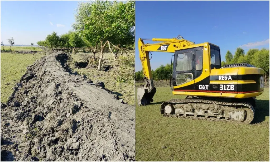 স্থানীয়রা জানান, ১৮ নভেম্বর ঠিক মধ্যরাতে দুইটি এক্সকাভেটর মেশিন ঢুকে পড়ে সংরক্ষিত বনের ভেতর। শুরু হয় মাটি তোলা, বাঁধ কাটা, গাছ উপড়ে ফেলা। পরদিন যোগ হয় আরো একটি মেশিন।