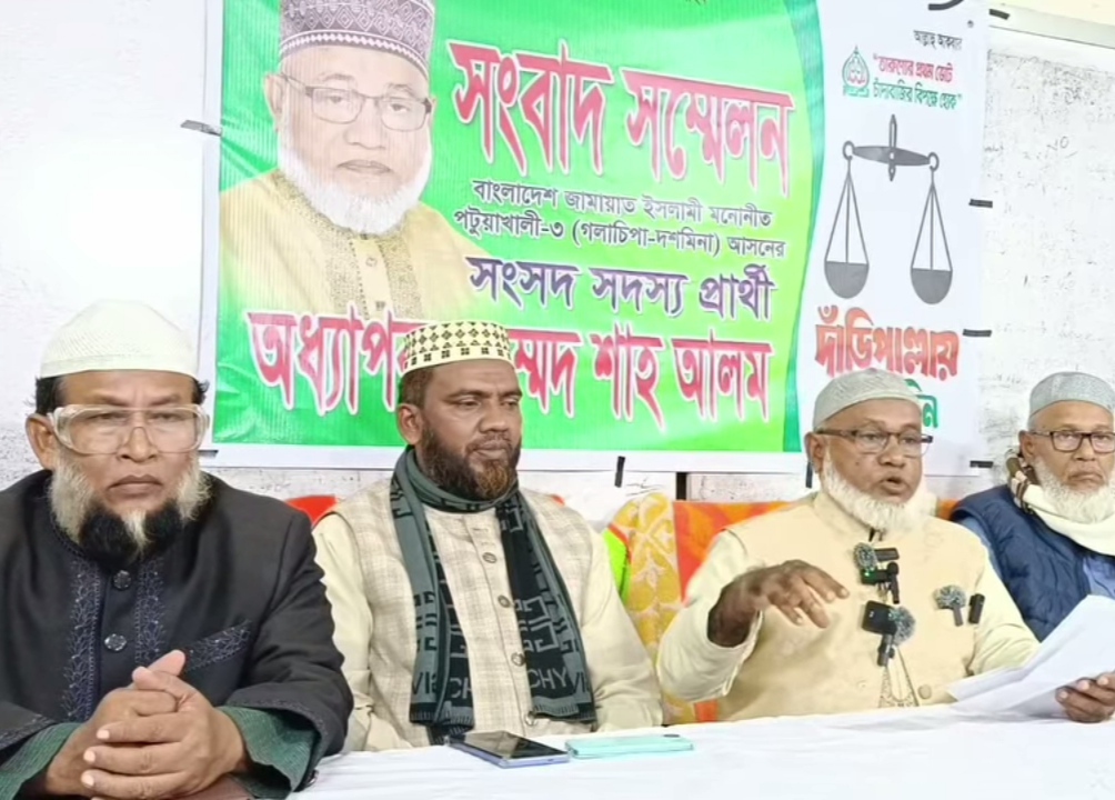 স্টাফ রিপোর্টার: আসন্ন জাতীয় ত্রয়োদশ সংসদ নির্বাচনকে ঘিরে পটুয়াখালী-৩ (গলাচিপা ও দশমিনা) আসনে বাংলাদেশ জামায়াতে ইসলামী মনোনীত সংসদ সদস্য পদপ্রার্থী অধ্যাপক মুহম্মদ শাহ আলম সোমবার রাতে এক সংবাদ সম্মেলনে নির্বাচনে তাদের জয়ের ব্যাপারে দৃঢ় প্রত্যয় ব্যক্ত করেছেন। গতকাল ২৪ নভেম্বর রাত ৮টায় গলাচিপা বালিকা মাধ্যমিক বিদ্যালয় হলরুমে অনুষ্ঠিত এই সংবাদ সম্মেলনে তিনি বিভিন্ন সাম্প্রতিক রাজনৈতিক ইস্যু, নির্বাচনী পরিবেশ ও নিজের উন্নয়ন পরিকল্পনা তুলে ধরেন।