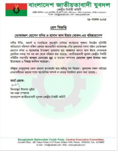 বিজ্ঞপ্তিতে আরও বলা হয়, দলের স্বচ্ছতা, আদর্শ এবং সাংগঠনিক শৃঙ্খলা রক্ষায় কেন্দ্রীয় যুবদল সবসময় কঠোর অবস্থানে রয়েছে। যুবদলের সকল পর্যায়ের নেতাকর্মীদের শৃঙ্খলার প্রতি দায়িত্বশীল হওয়ার নির্দেশনাও দেওয়া হয়েছে।