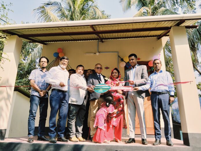 কলাপাড়া (পটুয়াখালী) প্রতিনিধি : পটুয়াখালীর কলাপাড়ায় দুর্যোগে ঝুঁকিতে থাকা ১০৯ পরিবারকে দুর্যোগ সহনশীল বসত বাড়ি হস্তান্তর করা হয়েছে। সোমবার সকাল ১০ টায় কলাপাড়া উপজেলা পরিষদ সভা কক্ষে প্রধান অতিথি হিসেবে নতুন এ ঘরের দলিল হস্তান্তর করেন উপজেলা নির্বাহী কর্মকর্তা কাউছার হামিদ। পল্লী কর্ম সহায়ক ফাউন্ডেশনের অর্থায়নে হীড বাংলাদেশ এ দুর্যোগ সহনশীল ঘর তৈরি করে।