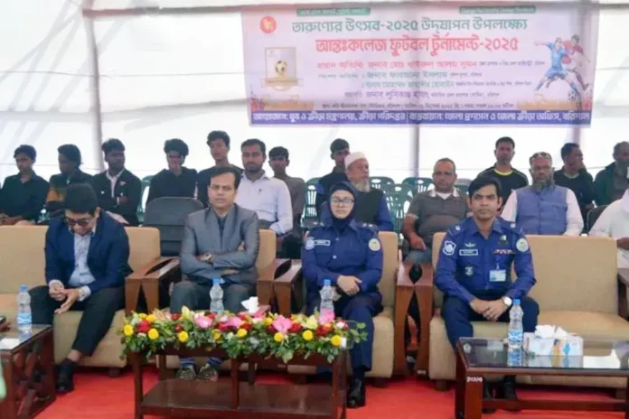 “তারুণ্যের উৎসব-২০২৫” উদযাপন উপলক্ষে বরিশালে আন্ত:কলেজ ফুটবল টুর্নামেন্ট শুরু হয়েছে। জেলা প্রশাসন ও জেলা ক্রীড়া অফিসের যৌথ উদ্যোগে এবং যুব ও ক্রীড়া মন্ত্রণালয়ের সহায়তায় আয়োজিত এ টুর্নামেন্টের উদ্বোধন করেন জেলা প্রশাসক মো খায়রুল আলম সুমন।