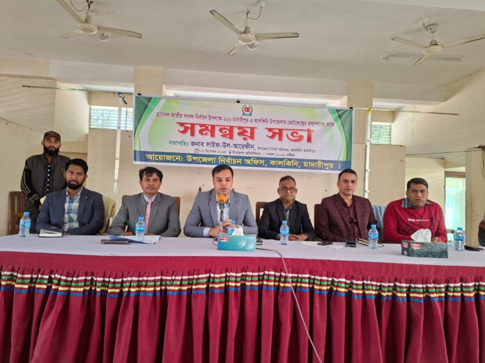 মাদারীপুর প্রতিনিধি: আসন্ন ত্রয়োদশ জাতীয় সংসদ নির্বাচন উপলক্ষ্যে মাদারীপুর-৩ আসনের কালকিনি উপজেলার বিভিন্ন ভোটকেন্দ্রের প্রধানদের সাথে সমন্বয় সভা অনুষ্ঠিত হয়েছে।