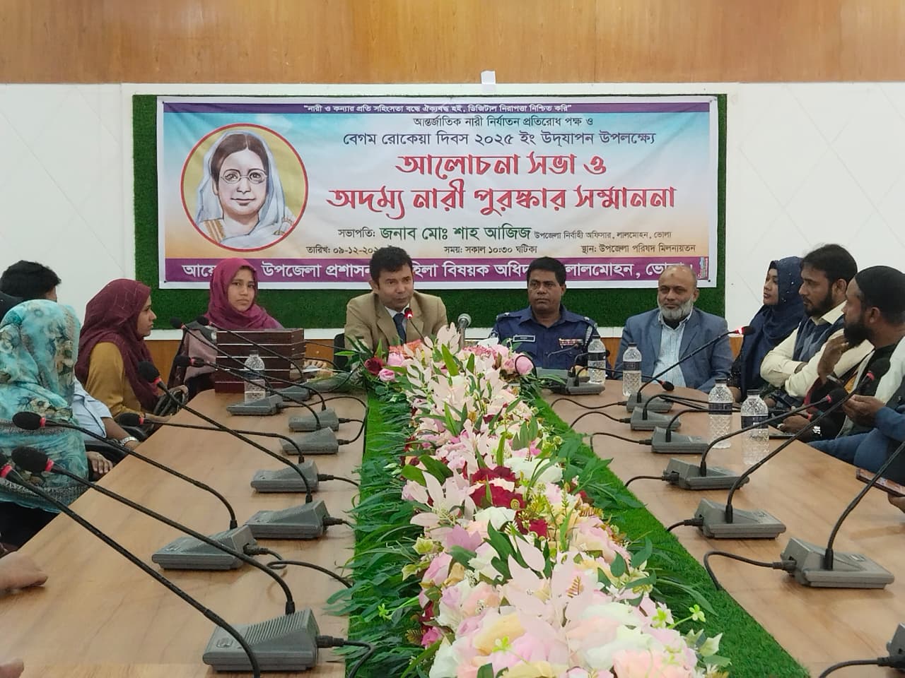লালমোহন উপজেলা নির্বাহী কর্মকর্তা মোঃ শাহ আজিজ এর সভাপতিত্বে অনুষ্ঠিত আলোচনা সভায় সঞ্চালনা করেন লালমোহন উপজেলা মহিলা বিষয়ক কর্মকর্তা কানিজ মার্জিয়া। আলোচনা সভায় বক্তারা বলেন, বেগম রোকেয়ার আদর্শ অনুসরণ করে নারী শিক্ষার প্রসার ও নারীর ক্ষমতায়ন নিশ্চিত করতে হবে।