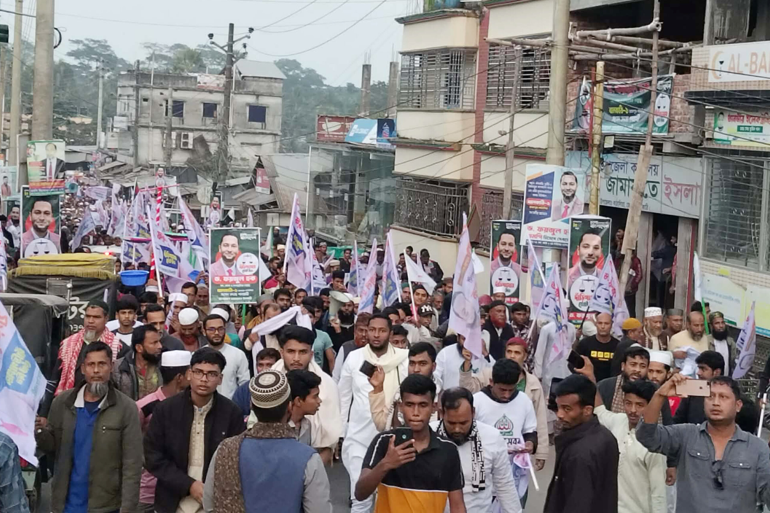 আজকের এই উচ্ছাস প্রত্যেকটি ঘরে ঘরে পৌছে দিতে হবে। নারী পুরুষের কাছে পৌছে দিতে হবে জামায়েত ইসলামী বাংলাদেশের গণমানুষের দল। সেই দাওয়ার পৌছে দেওয়ার মাধ্যমে আগামী রাষ্ট্র ক্ষমতায় জামায়াতে ইসলামী যাবে ইনশাআল্লাহ। মঙ্গলবার (৯ ডিসেম্বর) বিকেলে ঝালকাঠির কাঠালিয়ায় জামায়াতের দাঁড়িপাল্লার প্রার্থী ড. ফয়েজুল হকের নেতৃত্বে নির্বাচনী গণমিছিল শেষে পথসভায় তিনি এসব কথা বলেন।