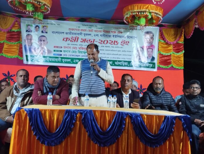 বাংলাদেশ জাতীয়তাবাদী দল (বিএনপি)–এর অঙ্গসংগঠন যুবদলের উদ্যোগে পিরোজপুরের মঠবাড়িয়া উপজেলার ২নং ধানিসাফা ইউনিয়নে কর্মীসভা অনুষ্ঠিত হয়েছে। শুক্রবার (১২ ডিসেম্বর) সন্ধ্যা ৬ টায় এ কর্মীসভা অনুষ্ঠিত হয়। অনুষ্ঠানে প্রধান অতিথি হিসেবে উপস্থিত ছিলেন উপজেলা যুবদলের আহ্বায়ক মোঃ মজিবুর রহমান।