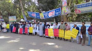 মাদারীপুর প্রতিনিধি: মাদারীপুরের রাজৈরে ইনকিলাব মঞ্চের মুখপাত্র ও ঢাকা-৮ আসনের সতন্ত্র সাংসদ প্রার্থী উসমান হাদী–এর ওপর সন্ত্রাসী হামলার প্রতিবাদে মানববন্ধন কর্মসূচি পালিত হয়েছে। (১৩ ডিসেম্বর) শনিবার ১১টায় রাজৈর শাহ শূফী জোনাব আলী কেন্দ্রীয় ঈদগাহ সড়কের সামনে সচেতন নাগরিক সমাজের ব্যানারে এ মানববন্ধন অনুষ্ঠিত হয়।
