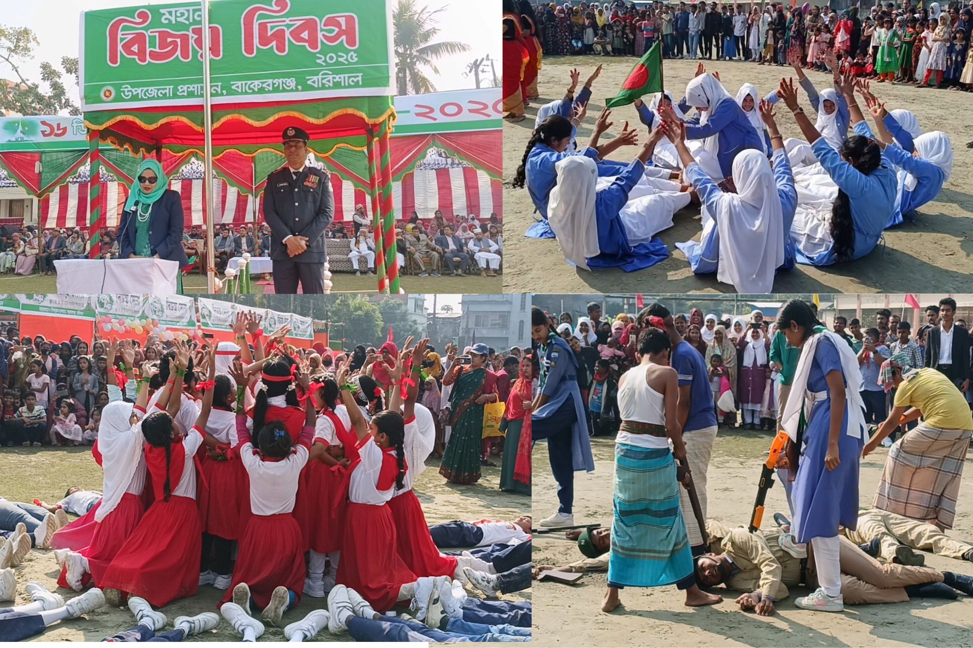 অনুষ্ঠানের মধ্যে সূর্য উদয়ের সাথে সাথে দিনের শুরুতেই ৩১ বার তোপধ্বনির মাধ্যমে মহান বিজয় দিবসের কর্মসূচি শুরু হয়। এরপর সকাল আটটায়( ৮) টায় উপজেলা প্রশাসন সহ বিভিন্ন রাজনৈতিক ও সামাজিক সংগঠনের নেতৃবৃন্দ শহীদদের স্মৃতির উদ্দেশ্যে সম্মান জানাতে শহীদ বেদীতে পুষ্প স্তবক করেন। বিজয় দিবস উপলক্ষ্যে বাকেরগঞ্জ উপজেলা প্রশাসন আয়োজিত জেএসইউ মডেল হাই স্কুল মাঠে এক বর্ণাঢ্য কুচকাওয়াজ ও ছাত্র-ছাত্রীদের ডিসপ্লে অনুষ্ঠিত হয়।