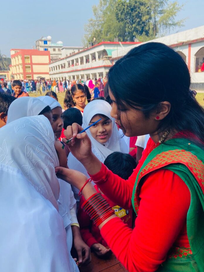 বেতাগী প্রতিনিধি : মহান বিজয় দিবস ২০২৫ উপলক্ষে বরগুনার বেতাগীতে রং-তুলিতে মুক্তিযুদ্ধের চেতনাকে ধারণ করে বিজয় উল্লাসে মেতে উঠেছে খুদে শিল্পীরা। শীতের আমেজে গরম পোশাকে সজ্জিত শিশু-কিশোরদের অংশগ্রহণে বেতাগী সরকারি পাইলট বিদ্যালয় মাঠে অনুষ্ঠিত হয় ব্যতিক্রমধর্মী চিত্রাঙ্কন কর্মসূচি ‘রং-তুলিতে বিজয় উল্লাস’।