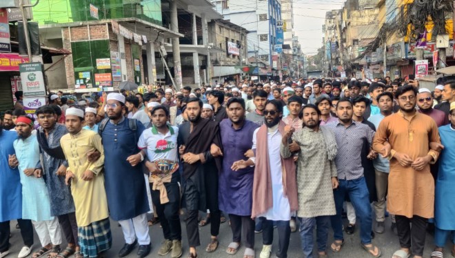 নামাজ শেষে বিক্ষোভ মিছিল নিয়ে নগরীর সদর রোড অশ্বিনী কুমার টাউন হলের সামনে গিয়ে জড়ো হন। সেখানে বিক্ষোভ সমাবেশ করে কর্মসূচি শেষ হয়।