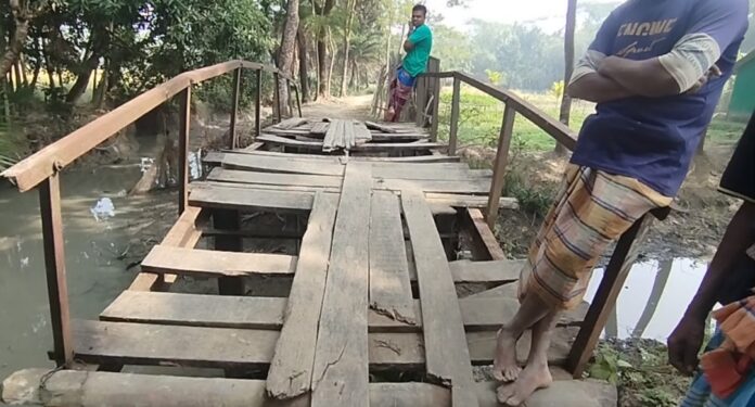 স্থানীয়রা জানান, জনসাধারণের সুবিধার্থে মিরুখালী ইউনিয়ন চেয়ারম্যান দীর্ঘ ৬/৭ বছর আগে কাঠ দিয়ে ব্রিজটি নির্মাণ করেন। বিগত কয়েক বছর যাবৎ ব্রিজটি সংস্কার না হওয়ায় ব্রিজ ভেঙে যাওয়ায় দুর্ভোগে দিন কাটাতে হচ্ছে এলাকাবাসীর। বর্তমানে ব্রিজটি যেন মরণ ফাঁদে পরিণত হয়েছে। স্থানীয় রাসেল খান বলেন , একজন অসুস্থ রোগীকে গাড়িতে নেওয়ার অনুপযোগী হয়ে পড়েছে।