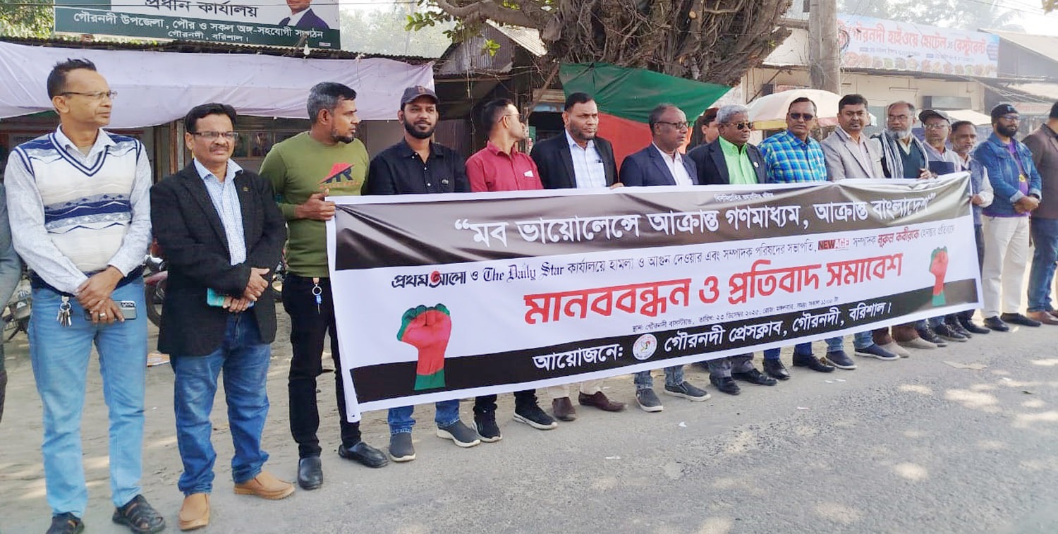 পুরো অনুষ্ঠান পরিচালনা করেন সাংবাদিক পলাশ তালুকদার। অনুষ্ঠিত মানববন্ধন ও প্রতিবাদ সমাবেশে গৌরনদী প্রেসক্লাবের সদস্যসহ কর্মরত সাংবাদিকরা উপস্থিত ছিলেন। প্রতিবাদ সমাবেশে বক্তারা মব ভায়োলেন্স তৈরি করে প্রথম আলো ও ডেইলি স্টার পত্রিকার কার্যালয়ে হামলা, অগ্নিসংযোগ এবং সম্পাদক পরিষদের সভাপতি নূরুল কবীরকে হেনস্তার সাথে জড়িত সকল দুষ্কৃতকারী অনতিবিলম্বে গ্রেপ্তারপূর্বক দৃষ্টান্তমূলক শাস্তির দাবি করেছেন।